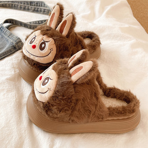 棕色KJN搞怪兔子棉拖鞋