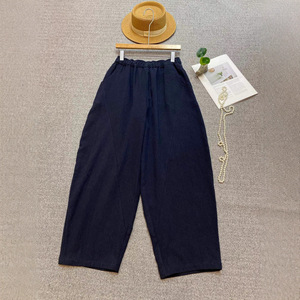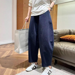 2025年秋款工艺色织牛仔萝卜裤舒适松紧腰简约时尚宽松百搭休闲裤