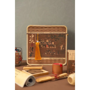 小木手提空木盒+花庭秋月装饰纸+流苏+随机中秋吊牌1个