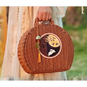 半圆形大号手提空篮+随机铃铛流苏+圆形中秋蓝月兔贴一个