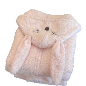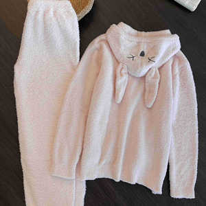 少女可爱兔耳朵连帽半边绒睡衣女冬季新款甜美粉色毛绒针织家居服