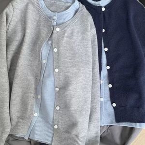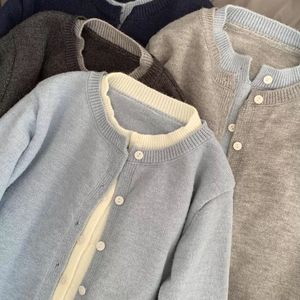 秋季韩系chic拼接撞色假两件灰色针织开衫外套女慵懒外搭毛衣上衣