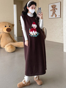 2025秋冬新款韩版时尚重工提花小狗显瘦针织马甲裙长袖打底衫套装
