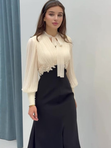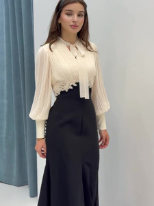 2025年外贸秋季跨境欧美新款外贸长款优雅气质拼接收腰礼服连衣裙