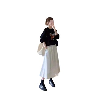 韩系高级感黑色可爱腊肠小狗字母印花卫衣女款春秋季圆领长袖上衣