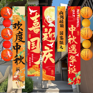 中秋节条幅国庆节商场店铺打卡拍照挂布装饰学校场景氛围布置用品