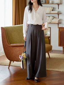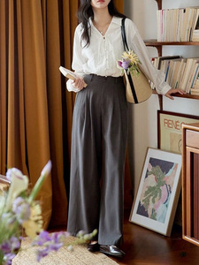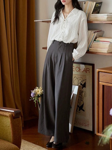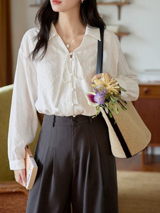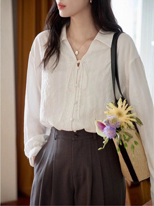 白色翻领花边系带落肩长袖衬衫女秋季法式复古气质上衣