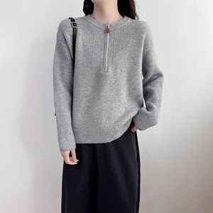 跨境欧美风休闲半拉链圆领套头毛衣女秋冬新款宽松内搭针织衫上衣
