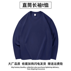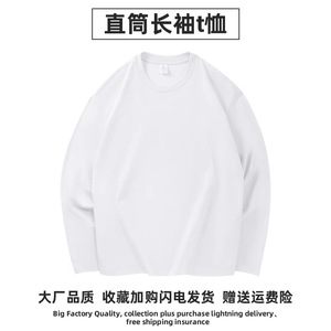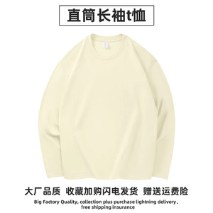 300g重磅秋季纯棉长袖打底衫男纯色宽松款男女圆领白色内搭打底衫