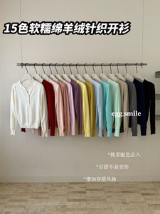 egg smile15色软糯绵羊绒针织开衫女早秋外套纯色简约百搭小开衫