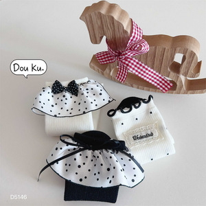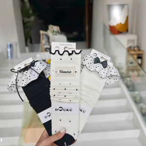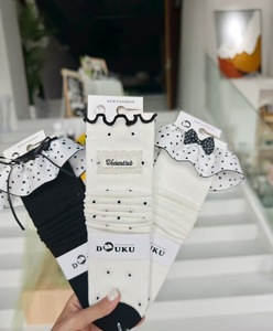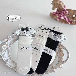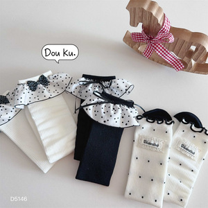 1逗库2025秋冬中筒袜女童女宝宝童袜蕾丝点点直板无跟袜子D5146