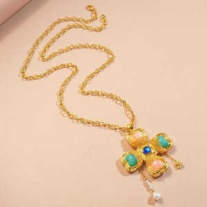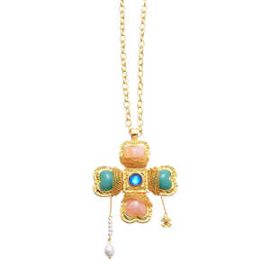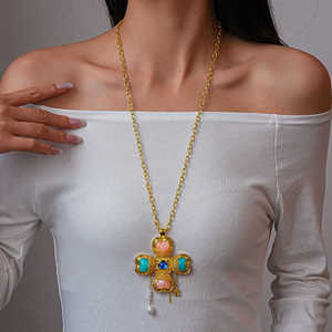 宫廷风爱心十字架项链金色中古vingate气质毛衣链小众轻奢女配饰