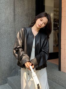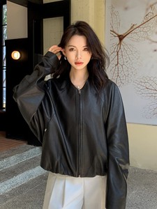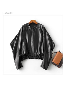 【街头画报】新款真皮皮衣女短蝙蝠袖绵羊皮夹克外套宽松休闲上衣