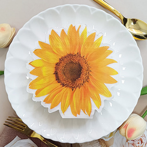 跨境新款印花餐巾纸异形向日葵彩色纸巾派对餐桌装饰方巾纸批发