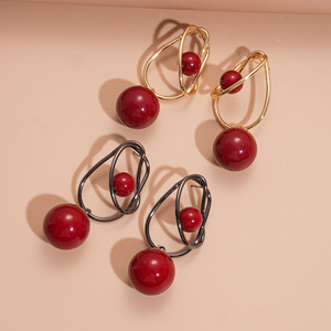 欧美亚克力几何圆形缠绕圆球银针耳环跨境个性小众高级感气质耳饰
