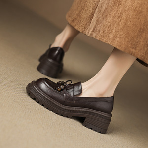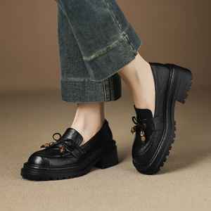 工厂直供 圆头蝴蝶结乐福鞋女英伦风小皮鞋厚底增高单鞋