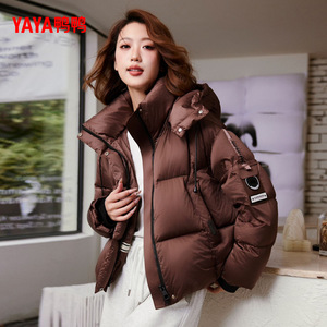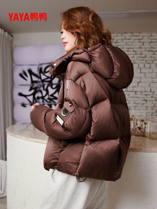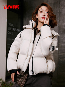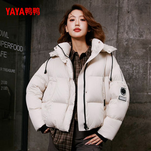 鸭鸭羽绒服女2025年冬季新款短款连帽宽松潮流时尚休闲外套M