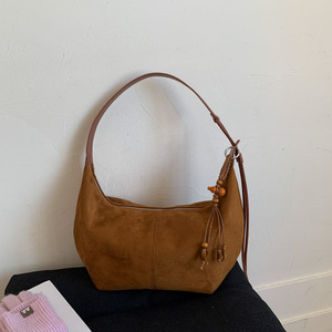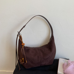 日韩小众磨砂麂皮绒托特包包女2025秋季新款简约百搭单肩斜挎包潮