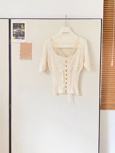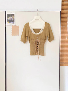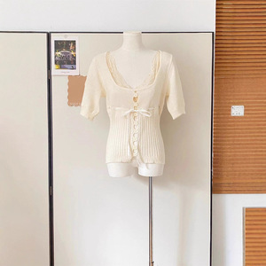 纯纯嗲欲套组 U领针织衫+花边挂脖吊带女早秋氛围感上衣