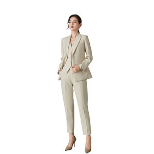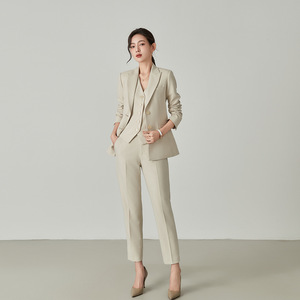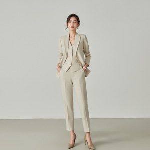 春秋冬季新款高级感杏色纯色米白职业西装外套马甲套装女商务正装