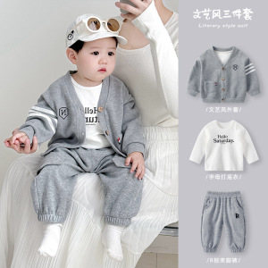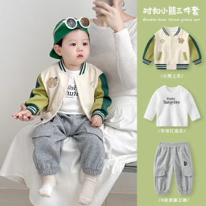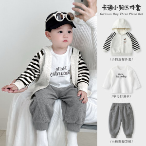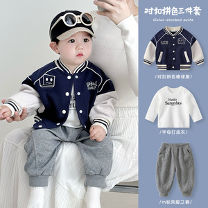 男宝宝套装秋装婴儿衣服男童分体三件套婴幼儿卫衣秋季儿童外出服