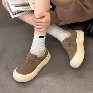 美拉德真皮厚底简约风女鞋2025秋季新款百搭增高一脚蹬丑萌大头鞋