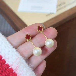 适合冬天的后挂式幸运花朵流苏珍珠耳环女独特轻奢高级感耳钉耳饰