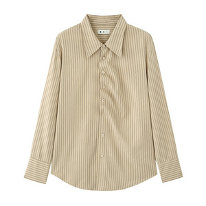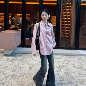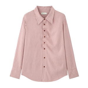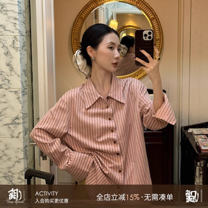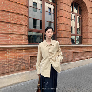 鹭青一原创【相对论】条纹衬衫女春秋设计感门襟收褶法式防晒衬衣