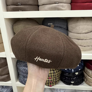 秋冬保暖百搭毛呢贝雷帽子女小众字母刺绣减龄显瘦呢子南瓜帽网红