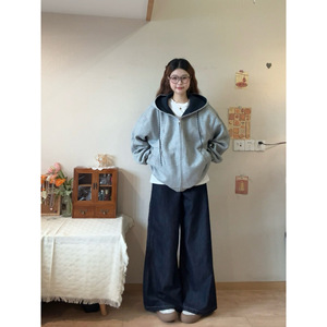 3633# 赫度 连帽卫衣外套秋季新款韩系chic慵懒风松弛感宽松开衫
