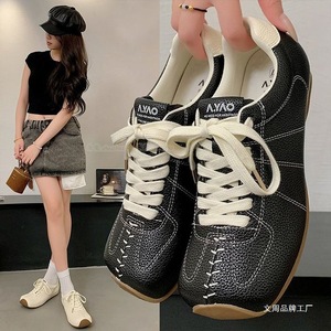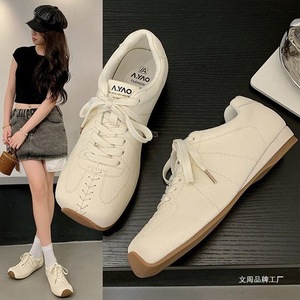 方头平底系带勃肯鞋高颜值气质板鞋2025秋新款舒适高级百搭运动鞋