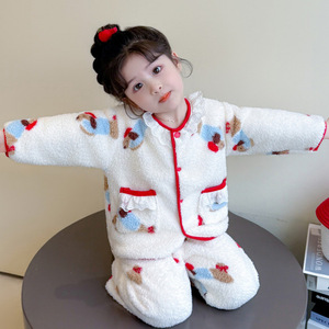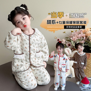 2025新款秋冬季儿童珊瑚绒睡衣加绒加厚公主法兰绒女童家居服套装