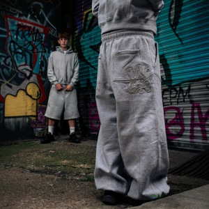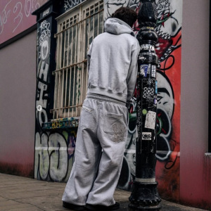 欧美拼接运动连帽衫男贴布设计卫裤宽松百搭设计感休闲套装潮跨境