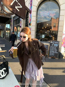 aaaaxbbb 博西雅之约 重工面料机车皮衣外套女气质时髦感夹克上衣