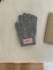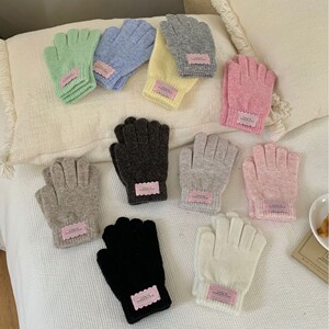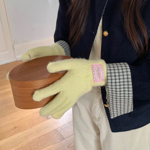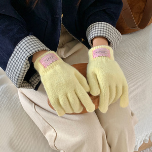 奶油黄~短款针织手套女冬软妹可爱彩色贴标防寒保暖分指手套骑行