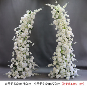 婚庆牛角门白绿仿真花艺跨境拱门排花婚礼装饰花排订婚宴橱窗绢花