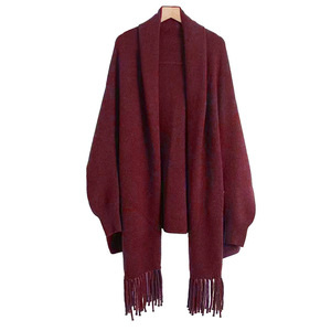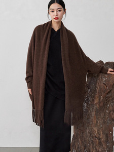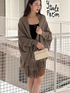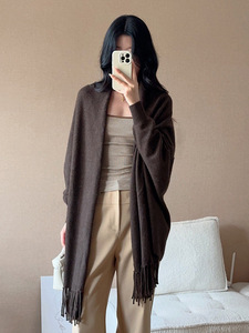 2025秋冬新款纯羊毛针织披肩女纯色宽松百搭流苏休闲韩版时尚开衫