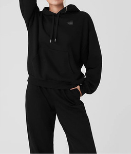 2025alo连帽跨境秋冬纯色慵懒风落肩帽衫休闲宽松长袖连帽卫衣套