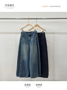 [简裁]T-PLATFORM 宽松遮肉复古蓝牛仔裤女早秋潮流香蕉裤93086