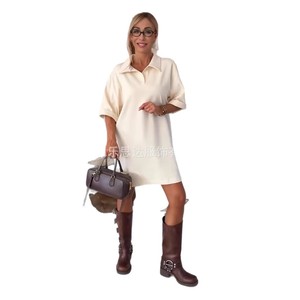 2025秋季新款欧美跨境亚马逊独立站女装纯色宽松衬衫大码连衣裙