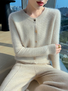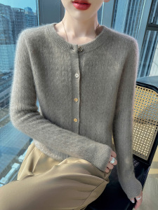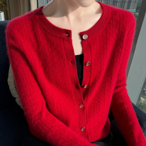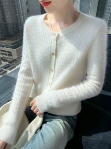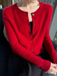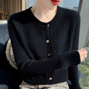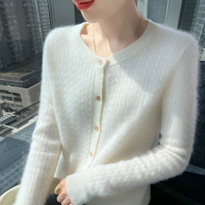 加厚秋冬新款圆领修身100%羊毛开衫女上衣麻花针织衫毛衣时尚百搭