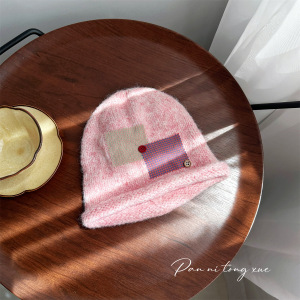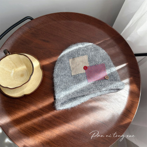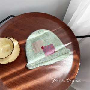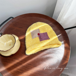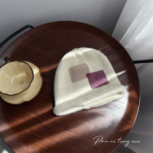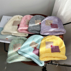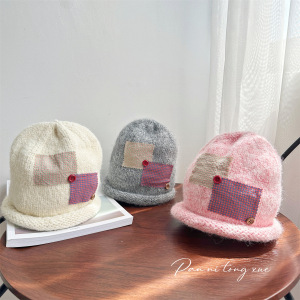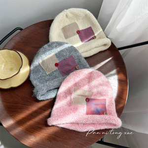 儿童韩版纽扣时尚针织帽子秋冬布标套头毛线帽保暖防风护耳寒帽子