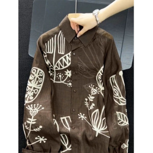 法式小资上衣早秋女装2025新款高级感巨好看咖色印花长袖衬衫外套