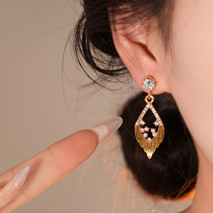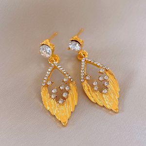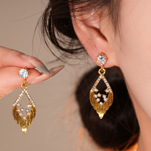 银针镶钻镂空树叶吊坠耳环轻奢高级感小众耳钉时尚气质百搭饰品女