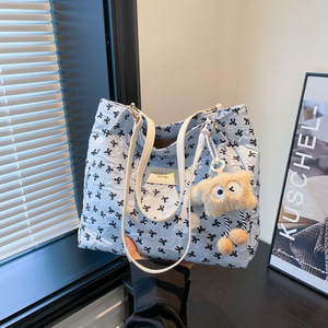 甜美少女蝴蝶结单肩托特包包女2025新款韩版时尚学院风大容量女包