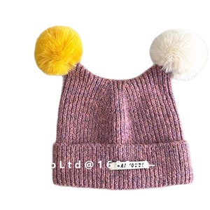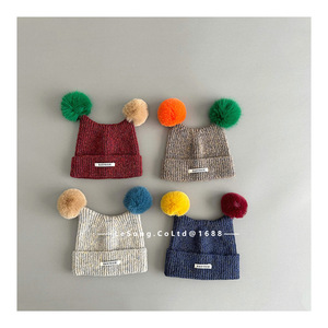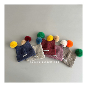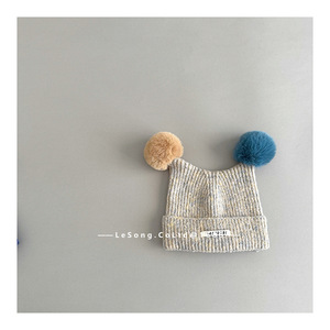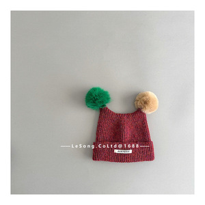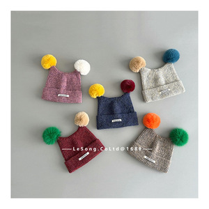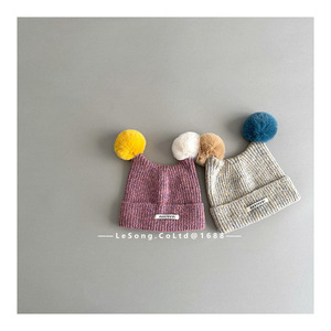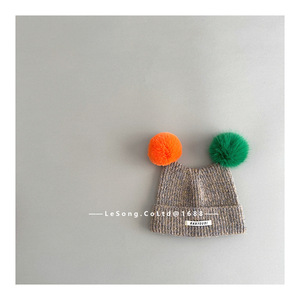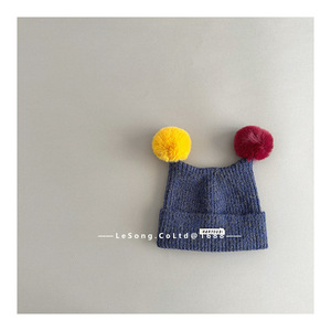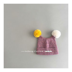 撞色毛球儿童毛线帽秋冬季甜美百搭保暖针织帽防寒宝宝搞怪套头帽