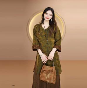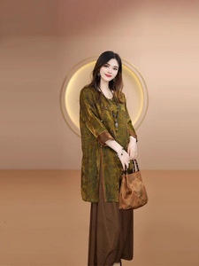 2025新款原创早秋新中式国风复古香云纱浮光锦织金盘扣轻奢上衣