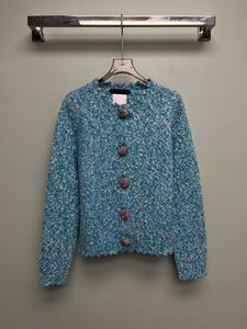 南油高定2025早秋新款小香风复古奶蓝色温柔风软糯高级感针织开衫
