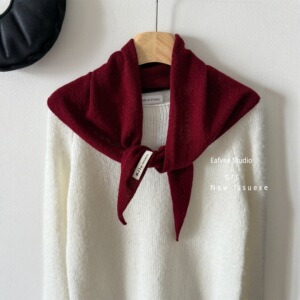 100%全羊毛彩点花纱三角巾高级感针织头巾多功能围巾保暖披肩秋冬