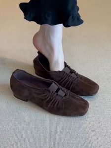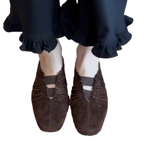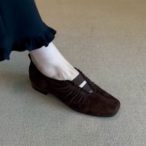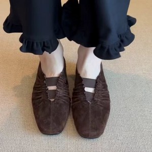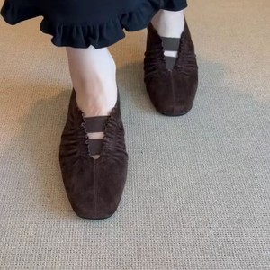 羊皮版~复古风方头褶皱平底单鞋女2025夏季新款百搭浅口玛丽珍鞋